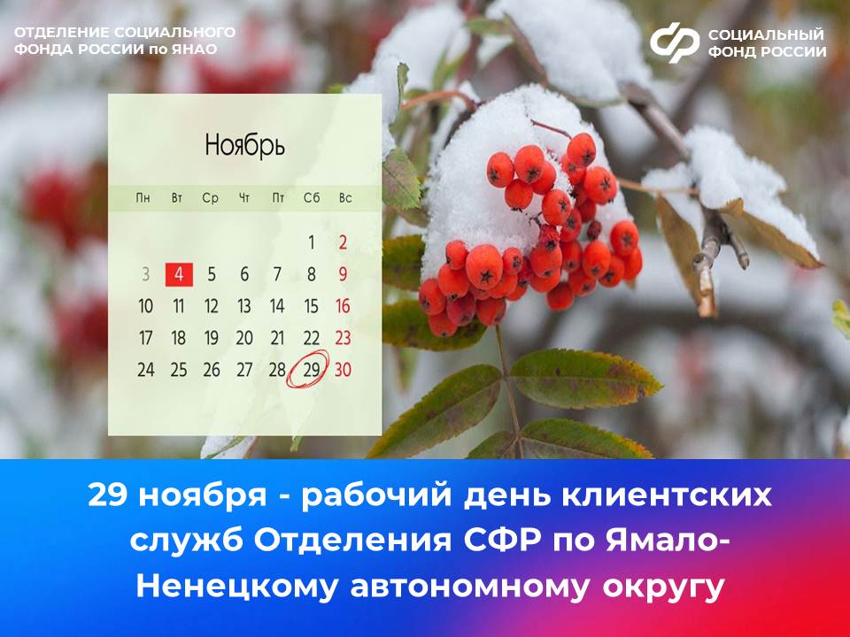 29 ноября 2025 года - рабочий день клиентских служб Отделения СФР по Ямало-Ненецкому автономному округу \ 28 Ноября 2025