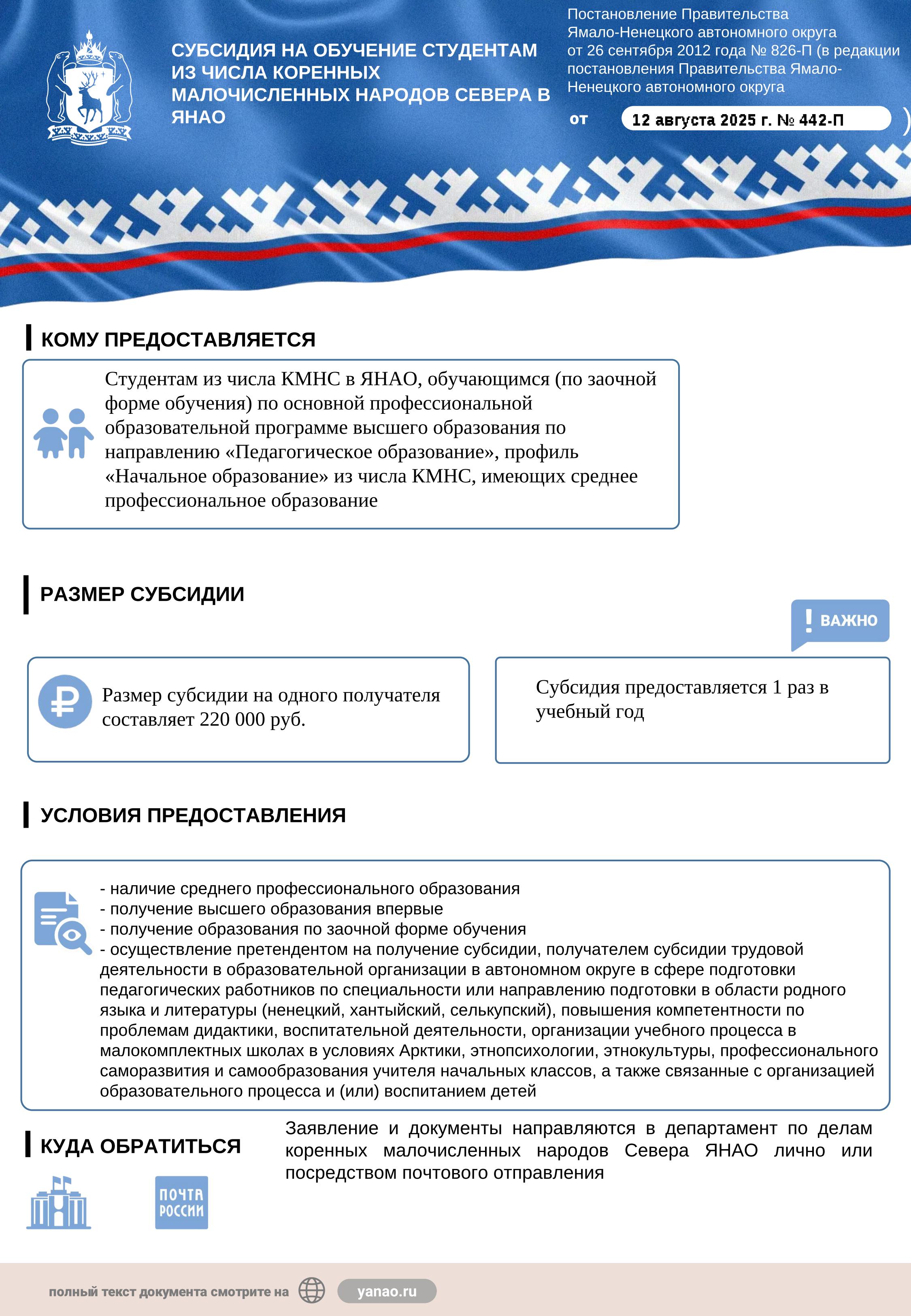 СУБСИДИЯ НА ОБУЧЕНИЕ СТУДЕНТАМ ИЗ ЧИСЛА КОРЕННЫХ МАЛОЧИСЛЕННЫХ НАРОДОВ СЕВЕРА В ЯНАО \ 20 Августа 2025